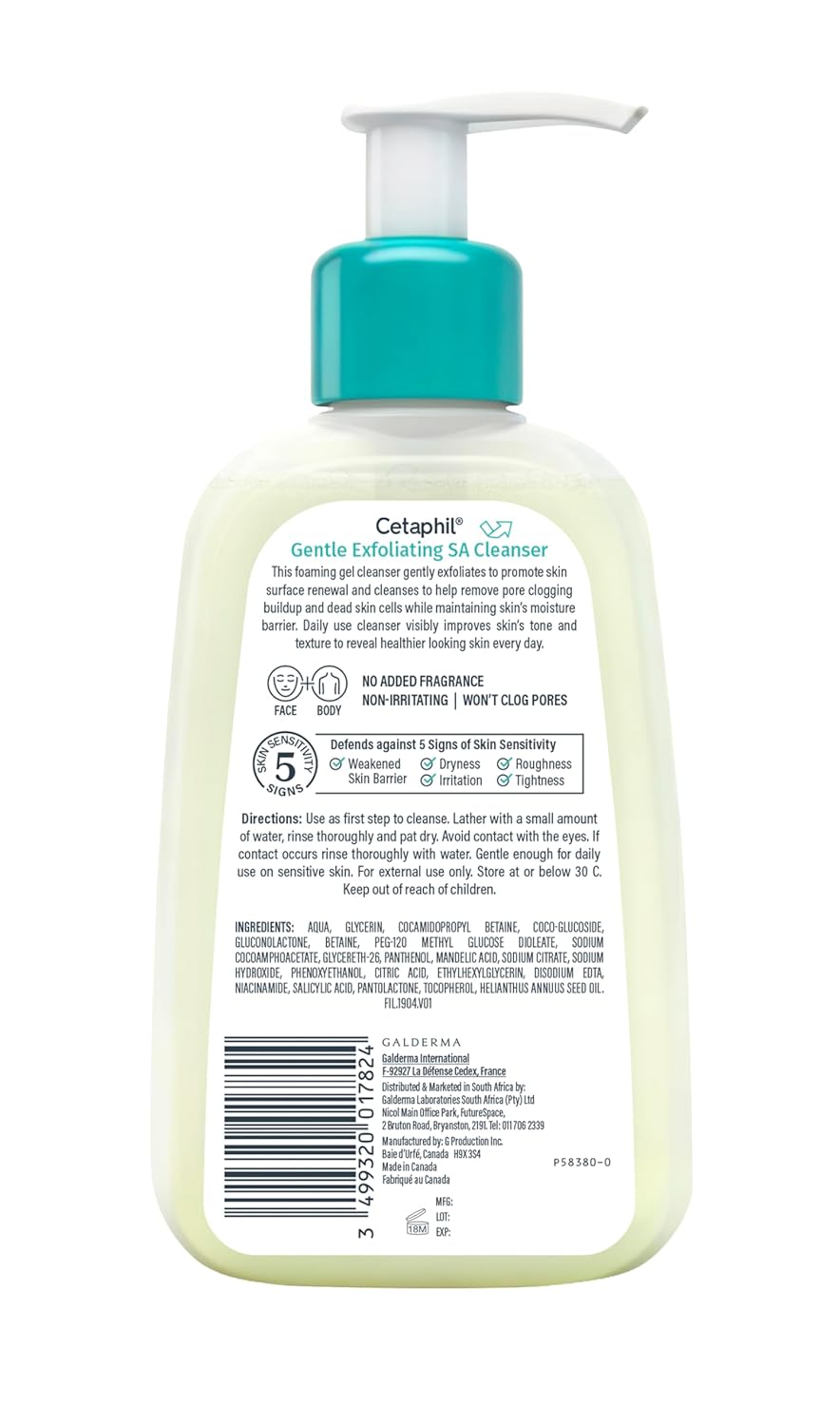 CETAPHIL GENTLE EXFOLIATING SA CLEANSER: Gently cleanses and exfoliates to promote surface skin cell renewal for smooth, even and radiant-looking skin after just 1 use